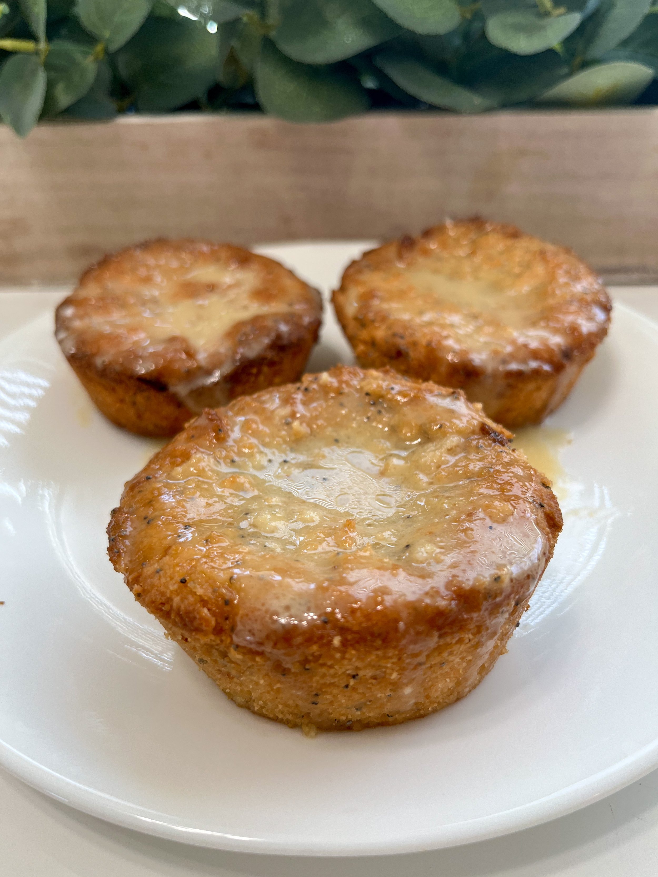 Glaze: 2 tbsp plain vegan yogurt mixed with 2 tsp melted coconut oil, 1 tbsp maple syrup, and fresh lemon juice