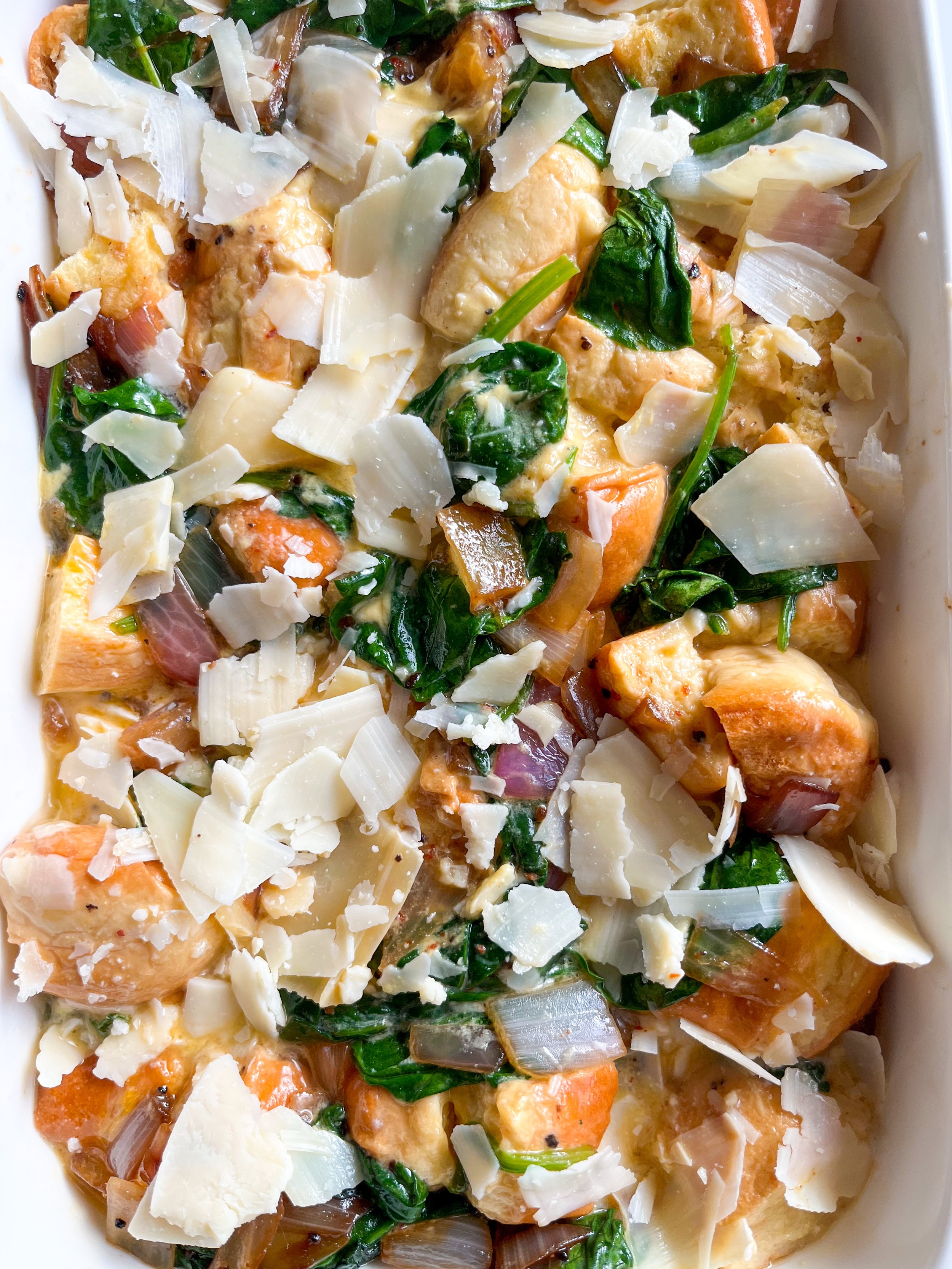 If you’re not ready to bake it immediately (like in the pictures), you can still assemble everything, store it in the fridge, and pop it in the oven when you’re ready. It can also easily be customized to fit your specific dietary needs and vegetables, so find what works best for you and use the below as just a guide - which goes the same for all of my recipes.